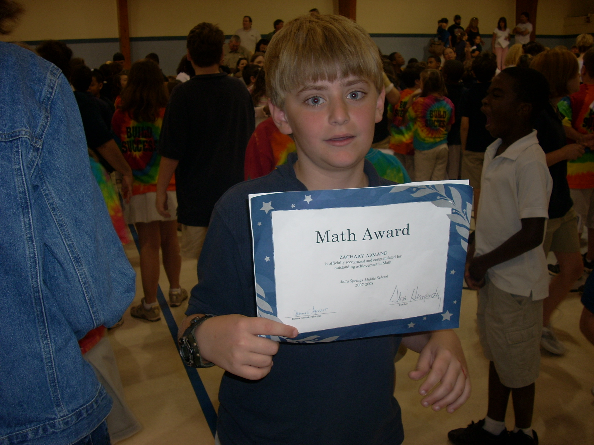 Zack got a couple of awards at school -- I was pleased, but he just wanted to get out of school! He seemed to really burn out this year. He made Honor Roll for the year, and won the Math Award for his class.