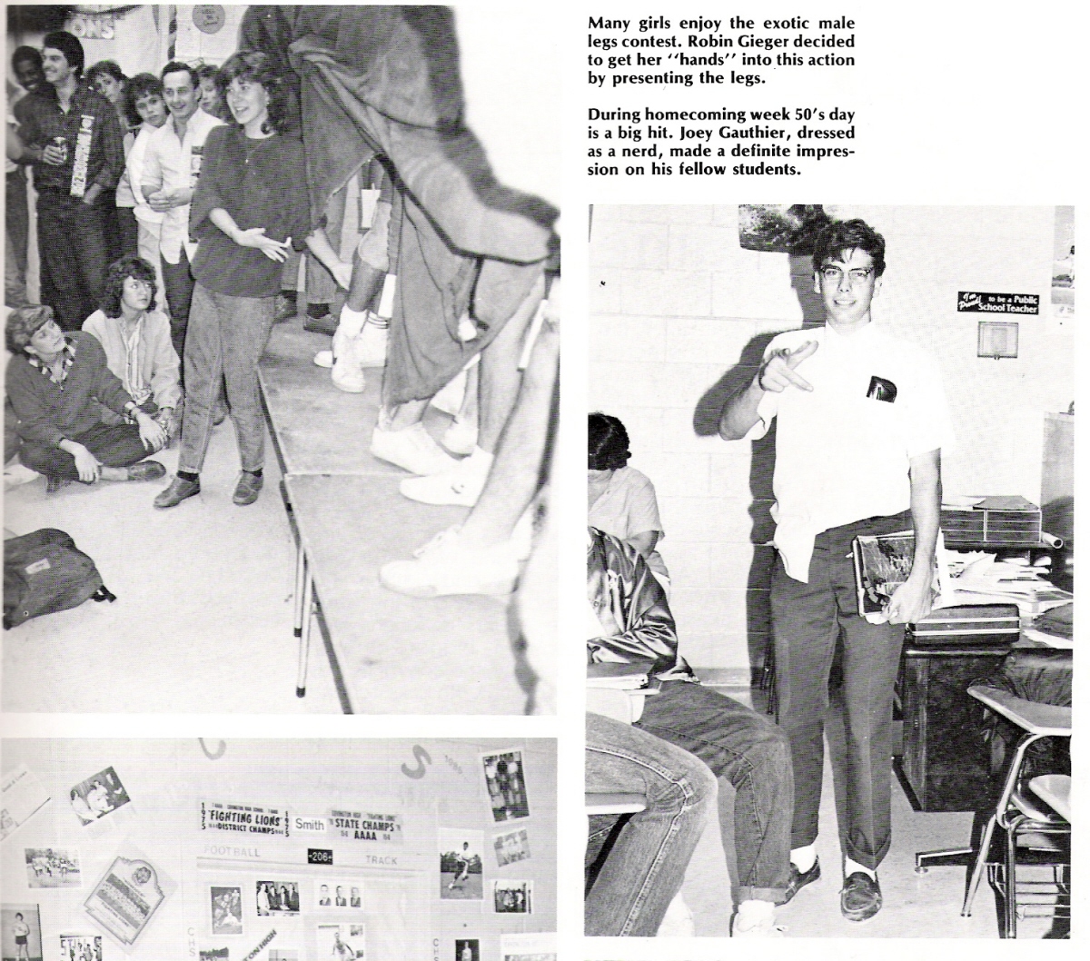 I don't have access to a scanner, Jerry do us the honors....can you scan this one? On Page 15 of our senior yearbook is a picture of that "legs" contest. ROBIN was showing them off!!